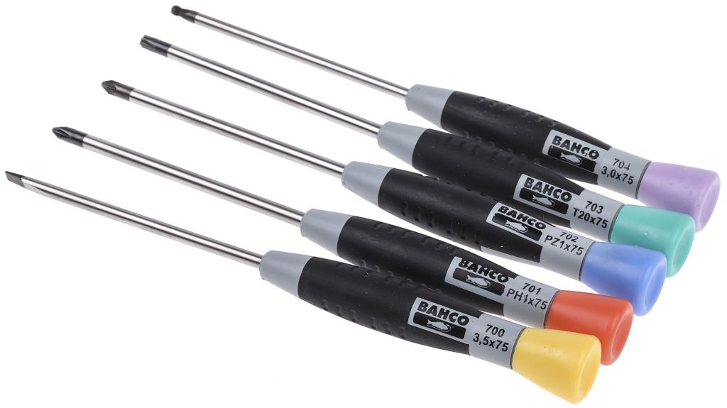 Precision screwdrivers are ideal hand tools to use on small, intricate devices like watches, calculators, mobile phones and other electronic devices. They are sometimes referred to as the jewel screwdriver. We offer the following Bahco precision screwdriver sets:
