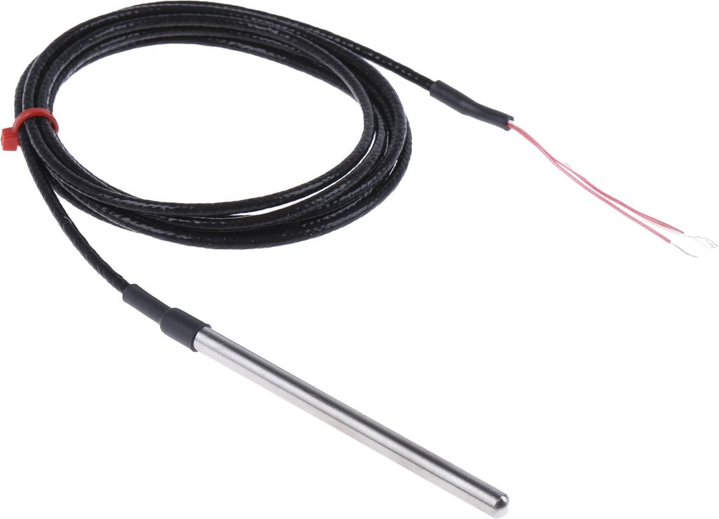 A Pt100 probe is the most rugged form of RTD. The Pt100 temperature sensor element is mounted inside a metal sheath or probe. This protects it from being damaged by the surrounding environment when it is inserted into the process to be measured. The other end of the probe is terminated by an insulated lead comprising of 4 wire tails which are connected to the temperature measuring equipment.