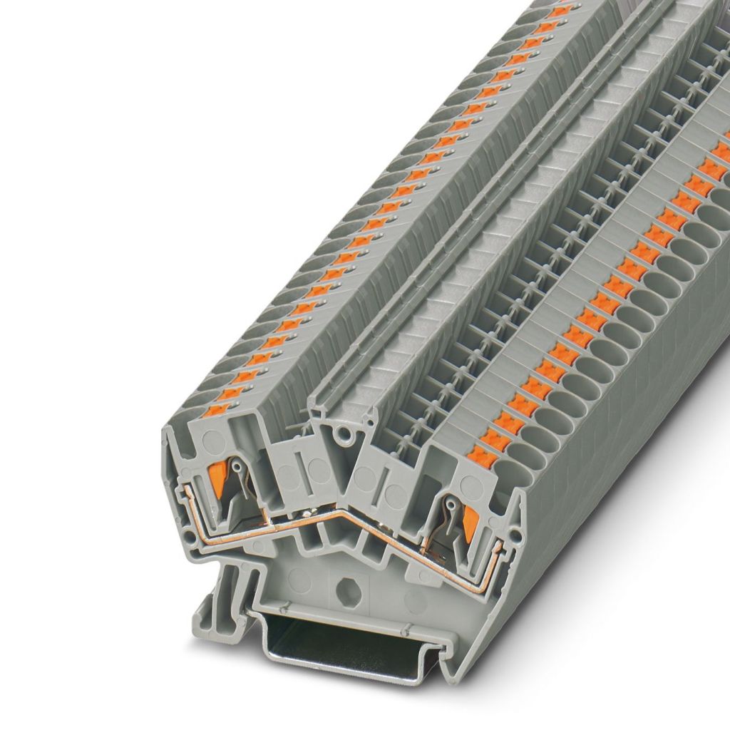 A professional range of PTS series Feed-through terminal blocks from Phoenix Contact. These push in connection terminal blocks are characterised by the system features of the CLIPLINE complete system and by easy tool-free wiring of conductors with ferrules or solid conductors. The PTS series terminal blocks are a compact design and front connection enabling a wide range of cable size wiring in confined space. All terminal blocks provide an addition test connection and are highly reliable and excellent quality.