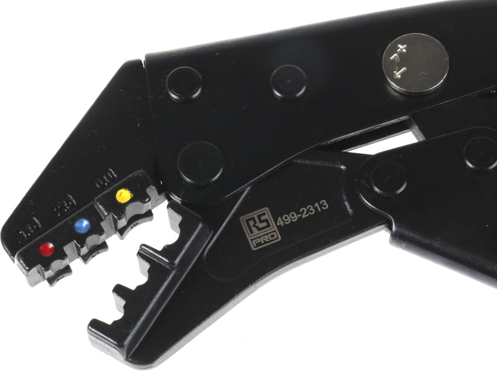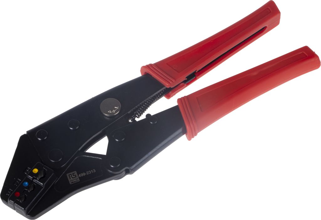 From the trusted RS PRO brand this ratchet action crimping tool is designed for use with insulated terminals, and easily crimps ring, spade and bullet crimp terminals onto appropriate wires and cables. The different crimp sizes are even colour-coded for further ease of use, and are suitable for use on insulated vinyl, polycarbonate and nylon Red, Blue and Yellow.