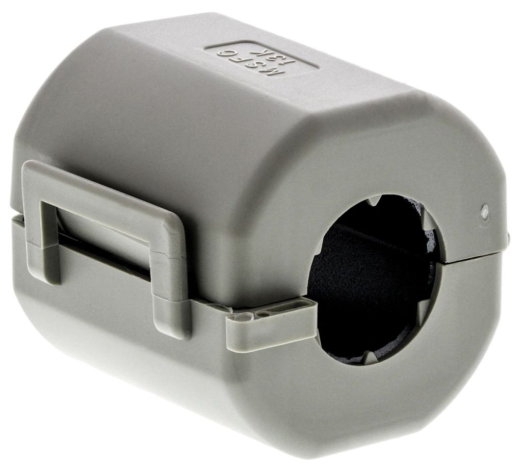 These split ferrite cores reduce the electromagnetic interference from being induced in or radiated from data and power cables. High attenuation ratings are achieved with the housing design and the special process steps during the ferrite manufacture. The special snap lock makes the ferrite sleeve suitable for use with a variety of cable diameters and once the split ferrite is locked it cannot be opened accidentally.The outer housing is designed to protect the halves of the core from breakage and ensures simple assembly on to cables that are already installed or which have been fitted with connectors. Fixing to the cable with glue or cable tie is optional. Typical applications for these split ferrite cores include data or power lines used in computer technology, terminals, industrial controllers, medical engineering and office machines.