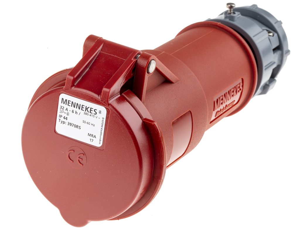 | Product description | MENNEKES, PowerTOP IP44 Red Cable Mount 4P Industrial Power Socket, Rated At 32A, 400 V |
