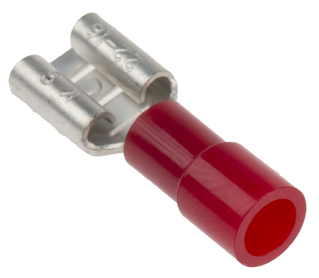 | Product description | RS PRO Red Insulated Female Spade Connector, Receptacle, 6.35 x 0.8mm Tab Size, 0.5mm² to 1.5mm² |