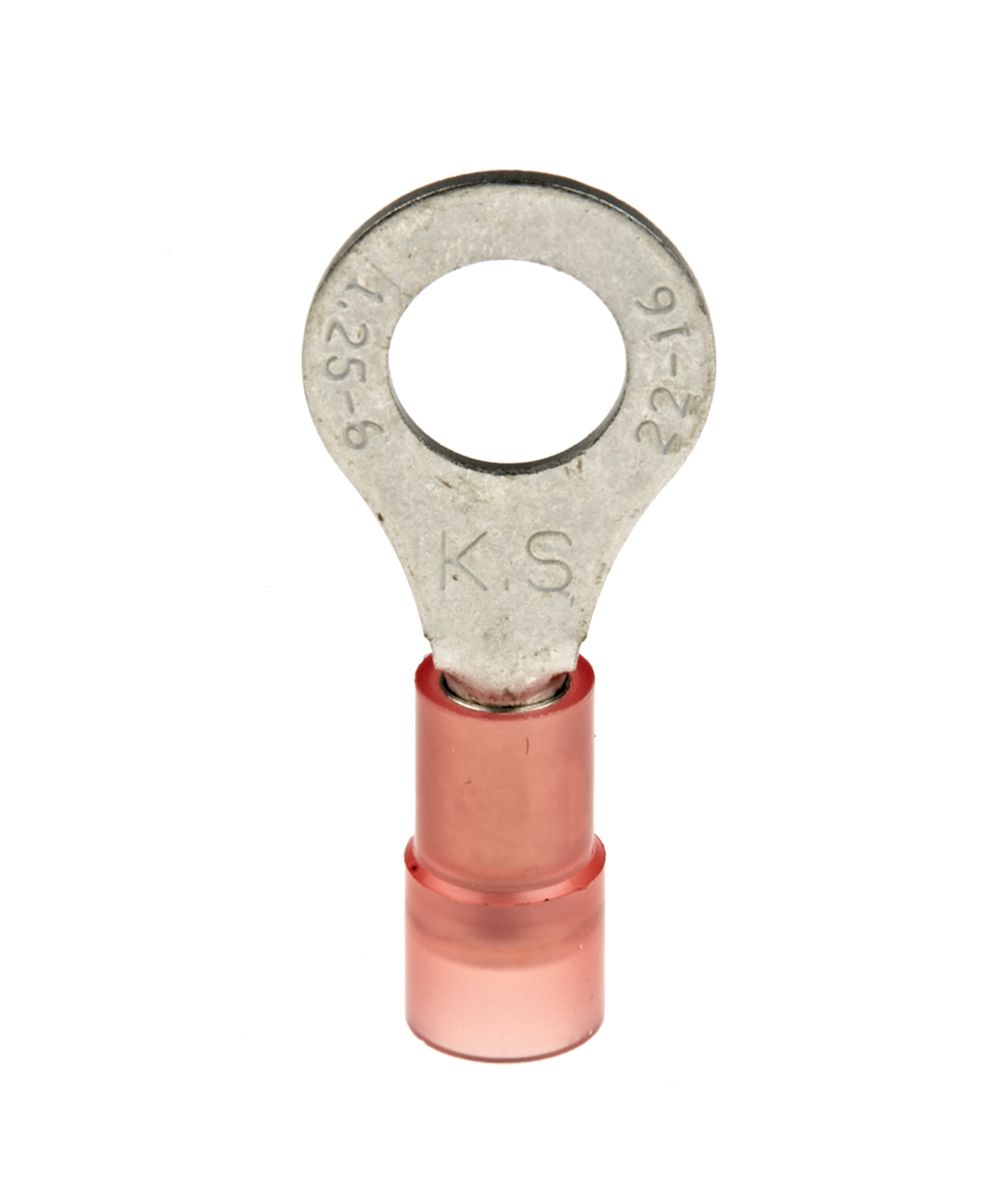 | Product description | RS PRO Insulated Ring Terminal, M6 (1/4) Stud Size, 0.5mm² to 1.5mm² Wire Size, Red |