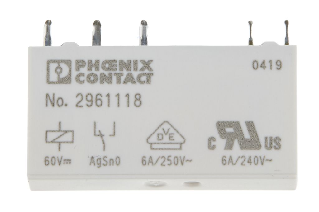 Product description Phoenix Contact, 60V dc Coil Non-Latching Relay SPDT PCB Mount Single Pole, 2961118