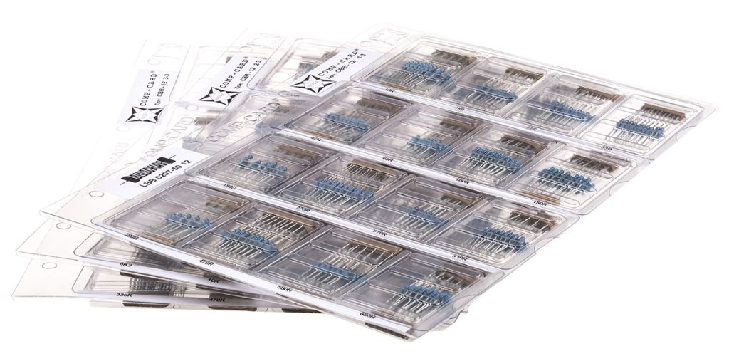 From Nova Elektronic this metalfilm resistor kit comes with 1,480 pieces with 48 values. The selection of CBR-12 Series 600mW resistors are axial mounting and are supplied in transparent compartmentalized packaging.