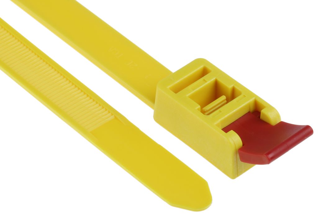 | Product description | HellermannTyton Yellow Nylon Releasable Cable Tie, 750mm x 13 mm |