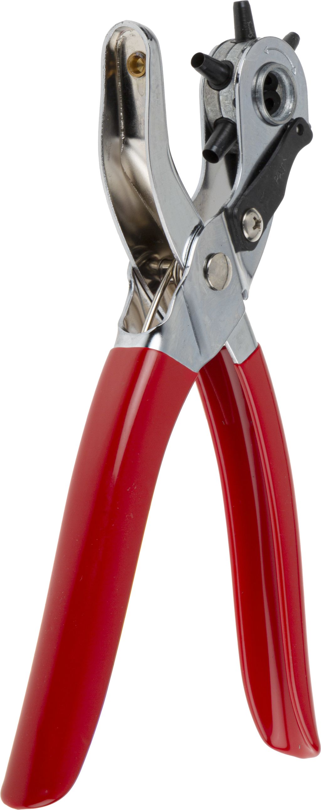 A punch plier is a tool that can be used to punch holes in various materials like leather, metal, fabric, and more. A revolving punch plier works by having the different sized punches on one wheel that rotates and allows you to select the size required. Tools like this are often used in the textile and leathercraft industries, as well as some metalworking applications. They are also versatile enough and easy to use for home DIY and crafting applications.