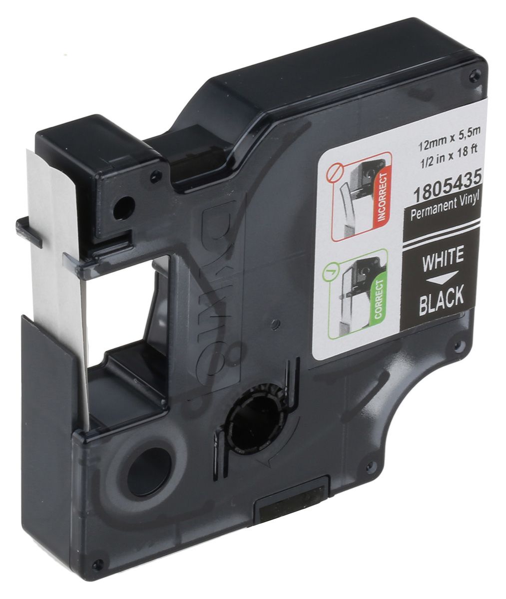 Dymo White on Black Label Printer Tape, 12 mm Width, 5.5 m Length