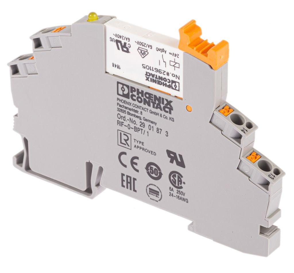 | Product description | Phoenix Contact, 24V dc Coil Non-Latching Relay SPNO, 6A Switching Current DIN Rail Single Pole, 2903361 |