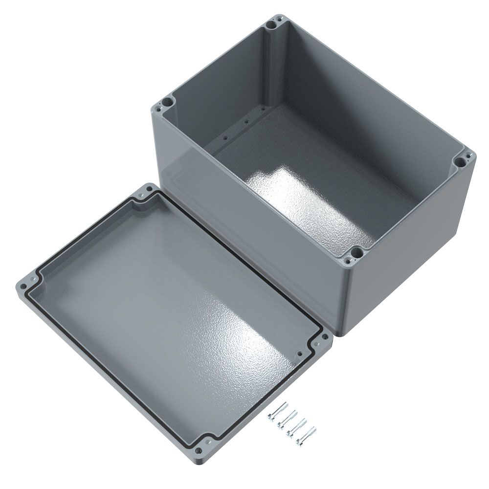 Aluminium enclosure consisting of lid, seal, Including Stainless Steel screws base with 2 or 4 earthing screws.