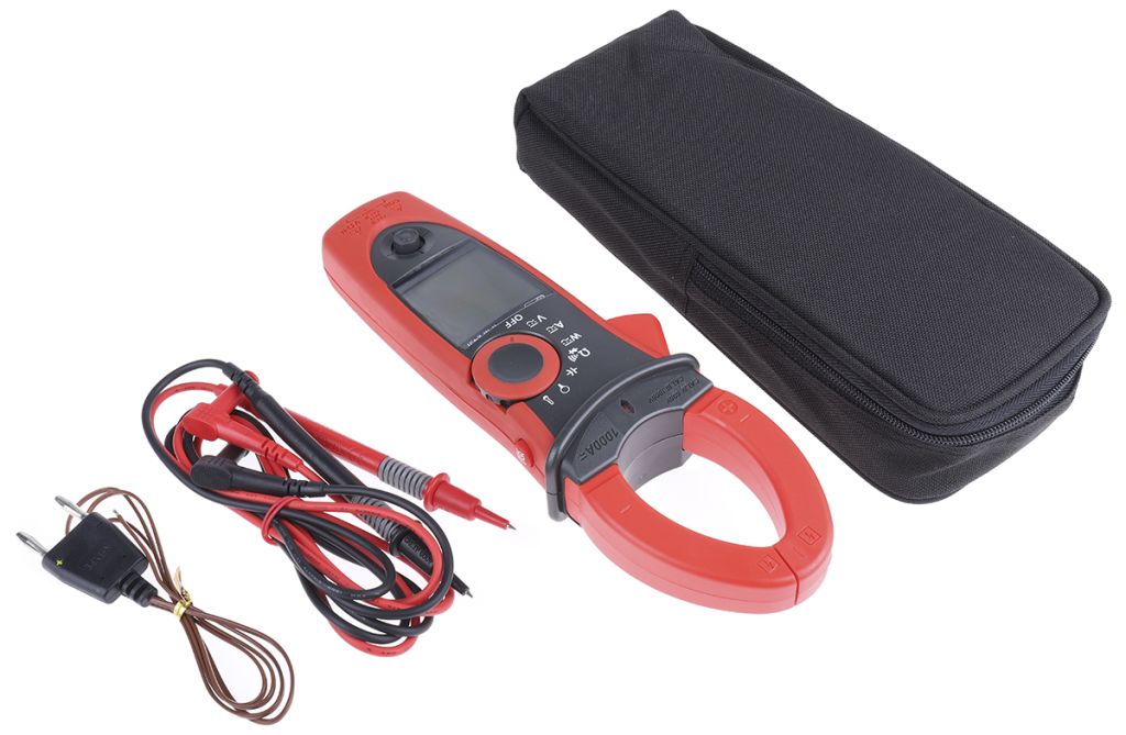 This multifunction clamp meter is designed for current measurement in electrical testing, and combines a digital multimeter with a clamping current sensor. The nature of the clamp means that it can fit around a wire at any point to sense current, voltage, continuity, frequency and more. This has the advantage of allowing electricians to take a reading from a wire without touching it, which is both more convenient and safer than other methods.