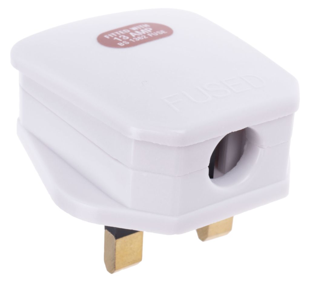 • 490-015 is a white 13A UK mains plug