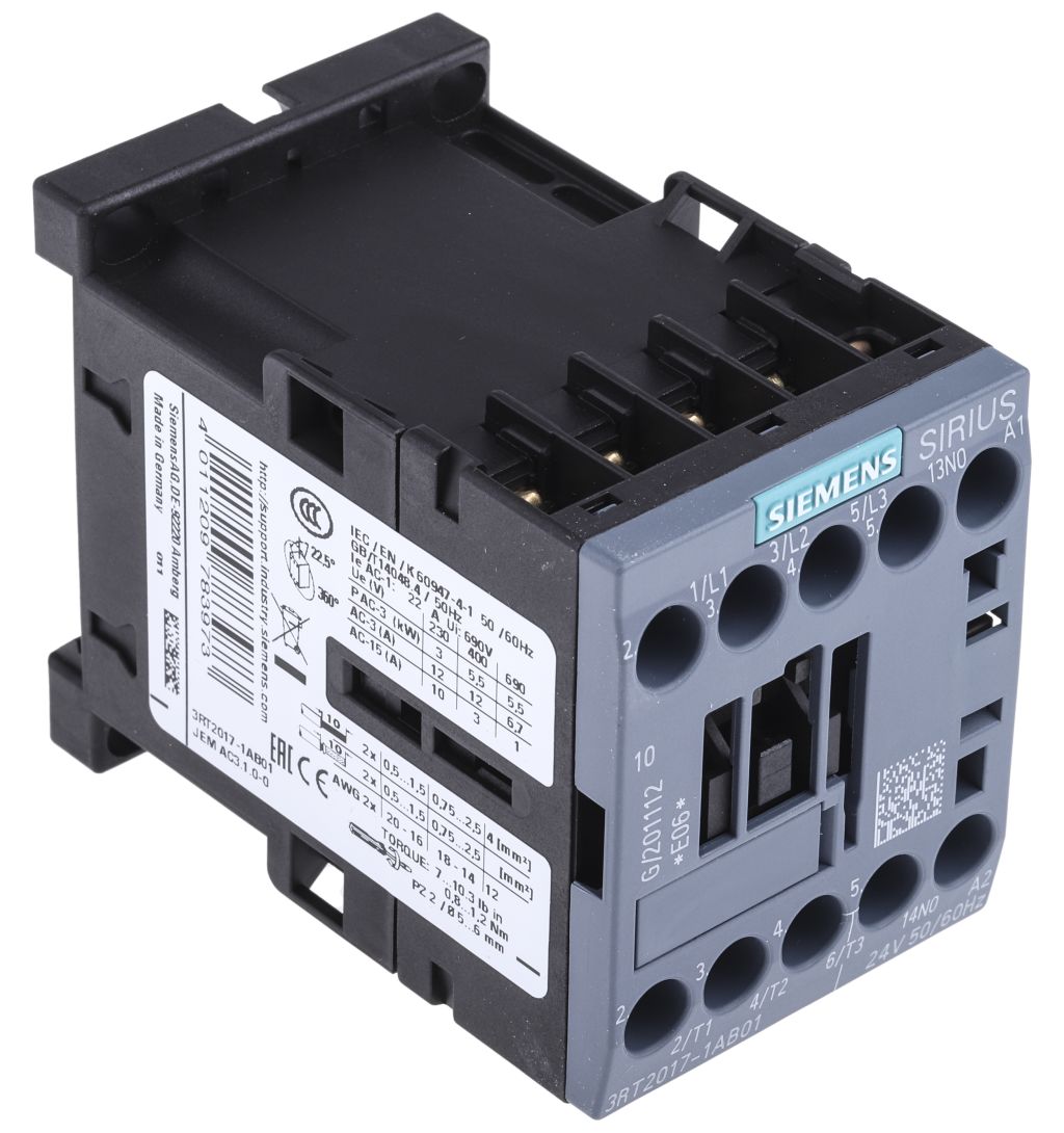 Siemens SIRIUS Innovation 3RT2 3 Pole Contactor – 12 A, 24 V ac Coil, 3NO, 5.5 kW