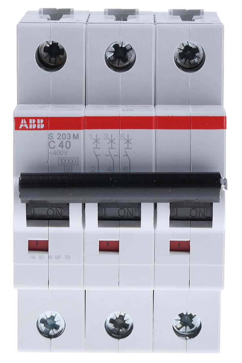 ABB System M Pro 40A MCB Mini Circuit Breaker, 3P Curve C, Breaking Capacity 10 kA, 440V
