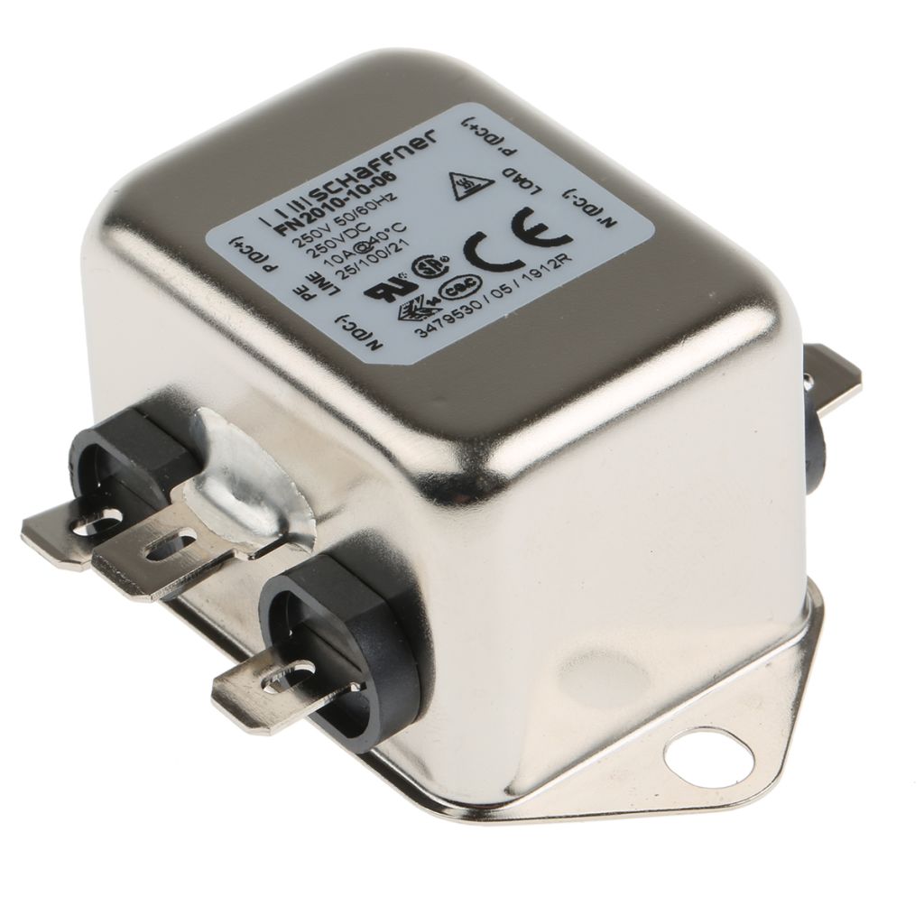 | Product description | Schaffner, FN2010 10A 250 V ac 0 → 400Hz, Chassis Mount RFI Filter, Tab, Single Phase |