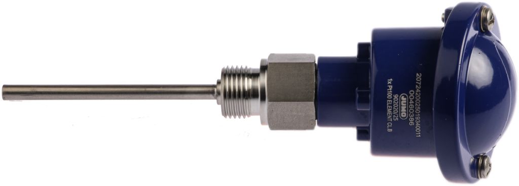 | Product description | Jumo PT100 RTD Sensor, 6mm Dia, 100mm Long, 3 Wire, G1/2, Class B +400°C Max |