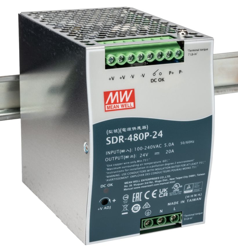 | Product description | Mean Well SDR Switch Mode DIN Rail Power Supply 88 → 264V ac Input, 24V dc Output, 20A 480W |