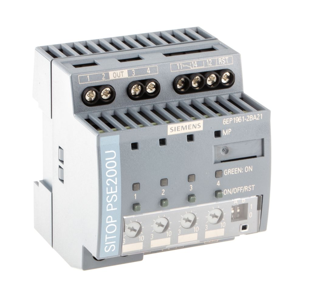 The SITOP PSE200U selectivity module is the optimal addition to all 24 V power supplies for distributing and monitoring the load current across several branch circuits. Overload and short-circuit in one or more feeders are reliably detected.