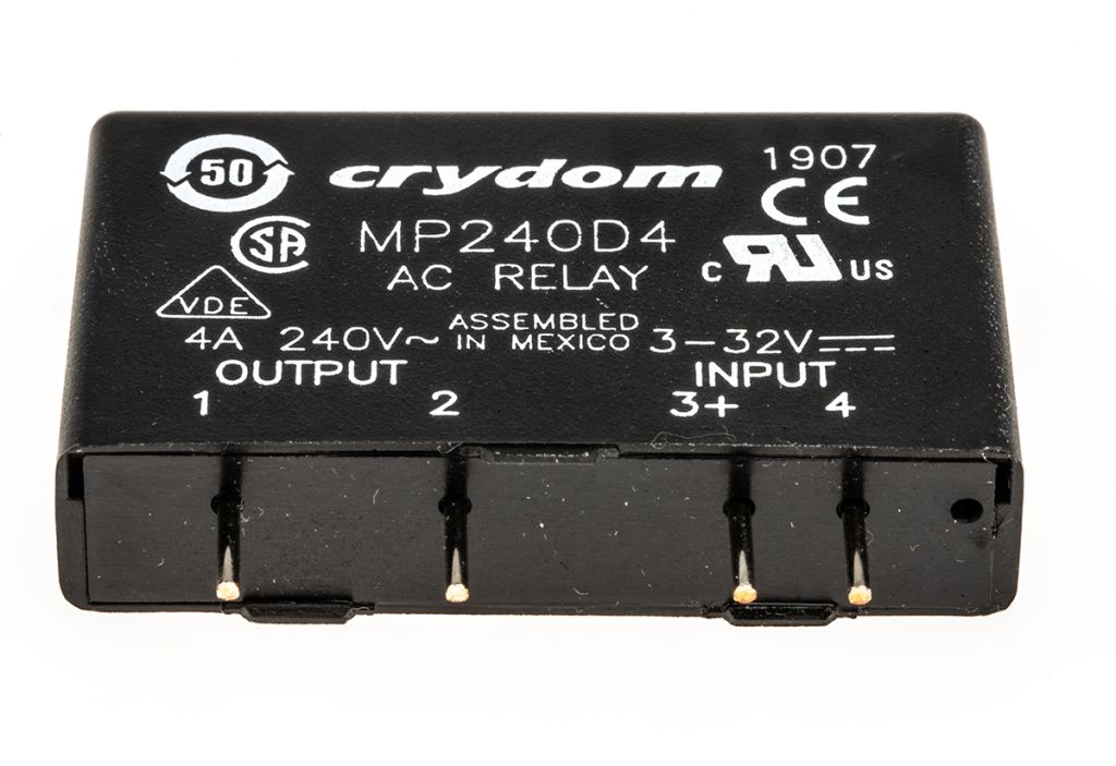 | Product description | Sensata / Crydom 4 A rms Solid State Relay, Zero Crossing, PCB Mount, Triac, 280 V dc Maximum Load |