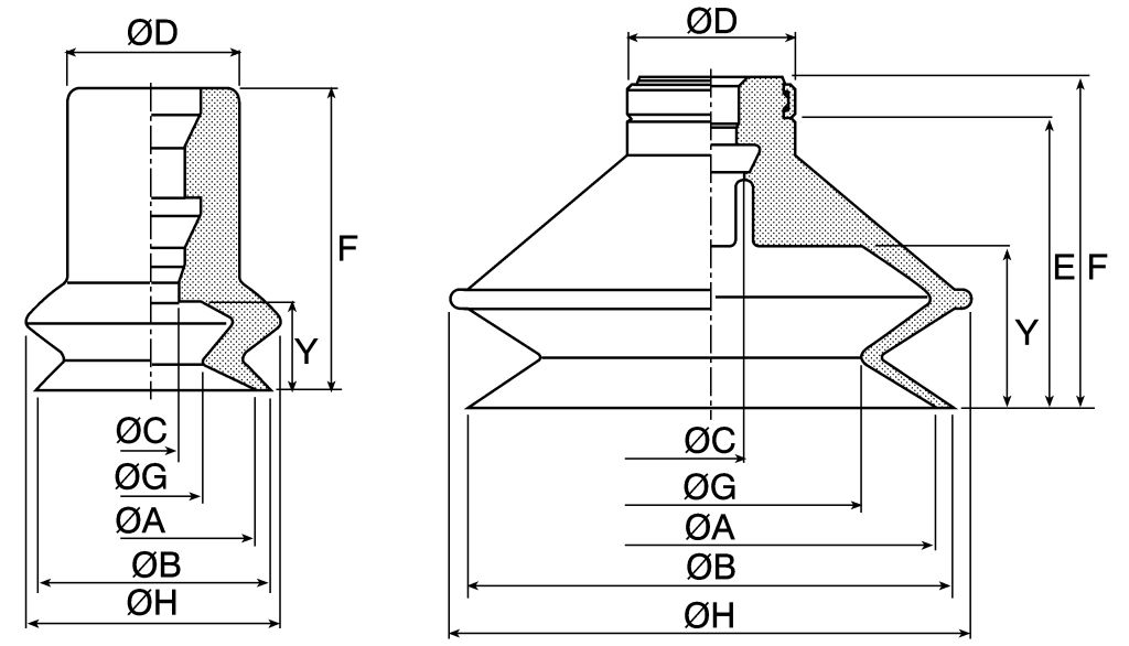 Suction cups/vacuum pads are the components used to lift and hold a workpiece in a pick and place application., the cups grip the workpiece fast and precisely These suction cups are ideal for flat and uneven surfaces.