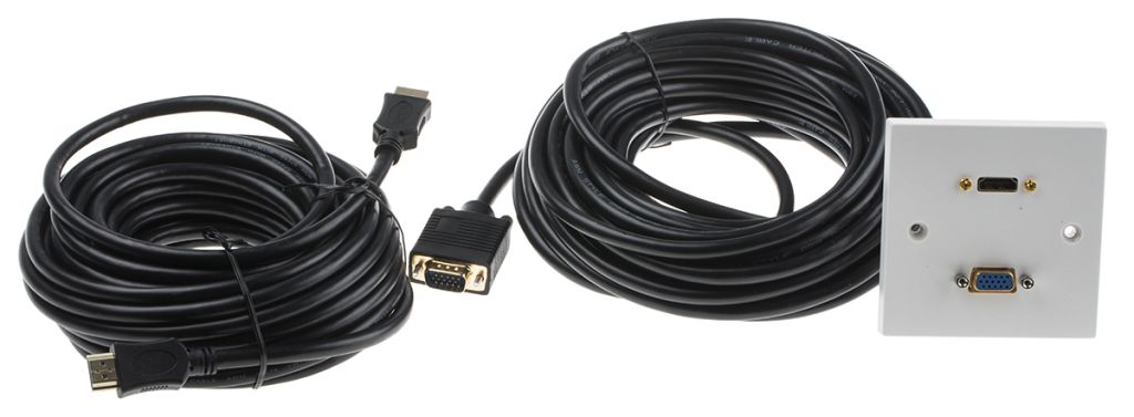 This is a single faceplate with a HDMI and VGA connector. The faceplate comes with female connectors at the front and male connectors on the opposite end of the cable. These are ideal for you to connect a range of devices while running cables behind walls. The single gang unit will fit standard size electrical back boxes.