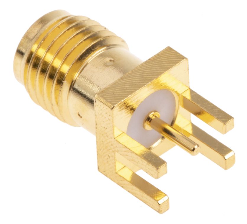This SMA connector socket is designed for use from DC to 18 GHz, and is designed to connect to appropriate coaxial cable assemblies and SMA plugs with a secure screw-on action. This connector would typically be used in Wi-Fi antenna systems.