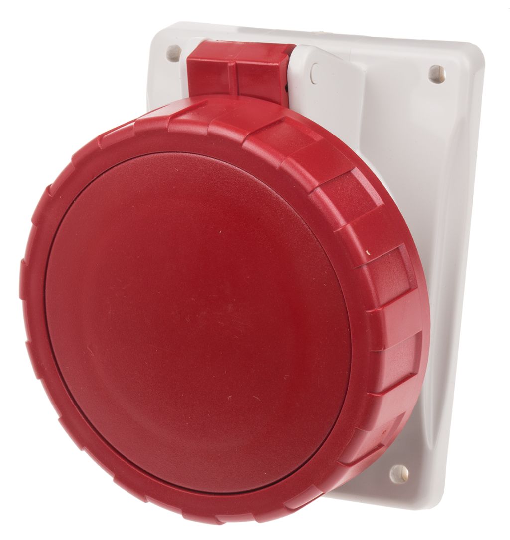 Scame IP66, IP67 Red Panel Mount 3P+E Heavy Duty Power Connector Socket, Rated At 32A, 415.0 V