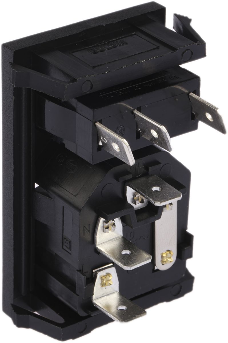 Product description Bulgin C14 Snap-In IEC Connector Male, 10A, 250 V, Fuse Size 5 x 20mm