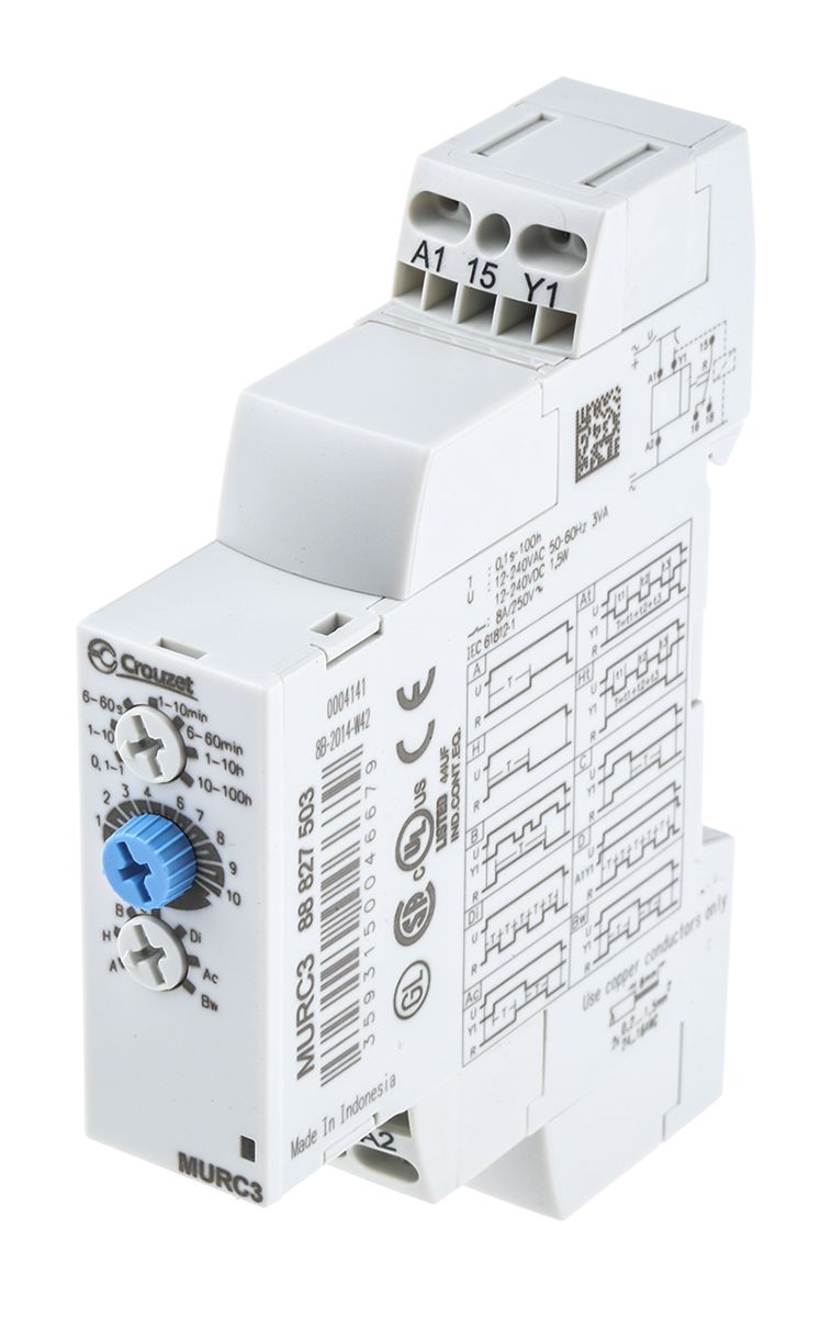 | Product description | Crouzet SPDT Multi Function Timer Relay, 12 → 240V ac/dc 0.1 s → 100h, DIN Rail Mount |