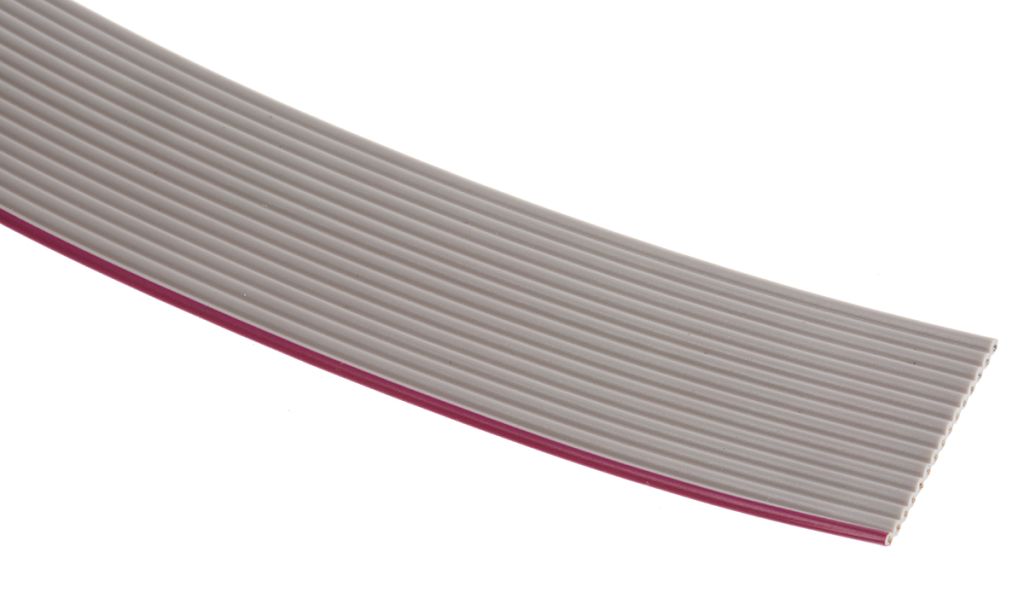 RS PRO range of flat ribbon cable which is suitable for use with all commonly available IDC connectors. This ribbon cable consists of parallel stranded tinned copper wire conductors laminated between layers of grey PVC film to form a flat ribbon cable suitable for use with Speedbloc® insulation displacement connectors. One edge has a red marker to indicate the first conductor. This flat cable can be split into any number of ways by tearing between conductors. The laminate ensures precise alignment and spacing between conductors, essential during assembly with the connectors. Each conductor is formed from 7 strands of 36 AWG (0.13 mm diameter), 28 AWG overall (0.08 mm2).