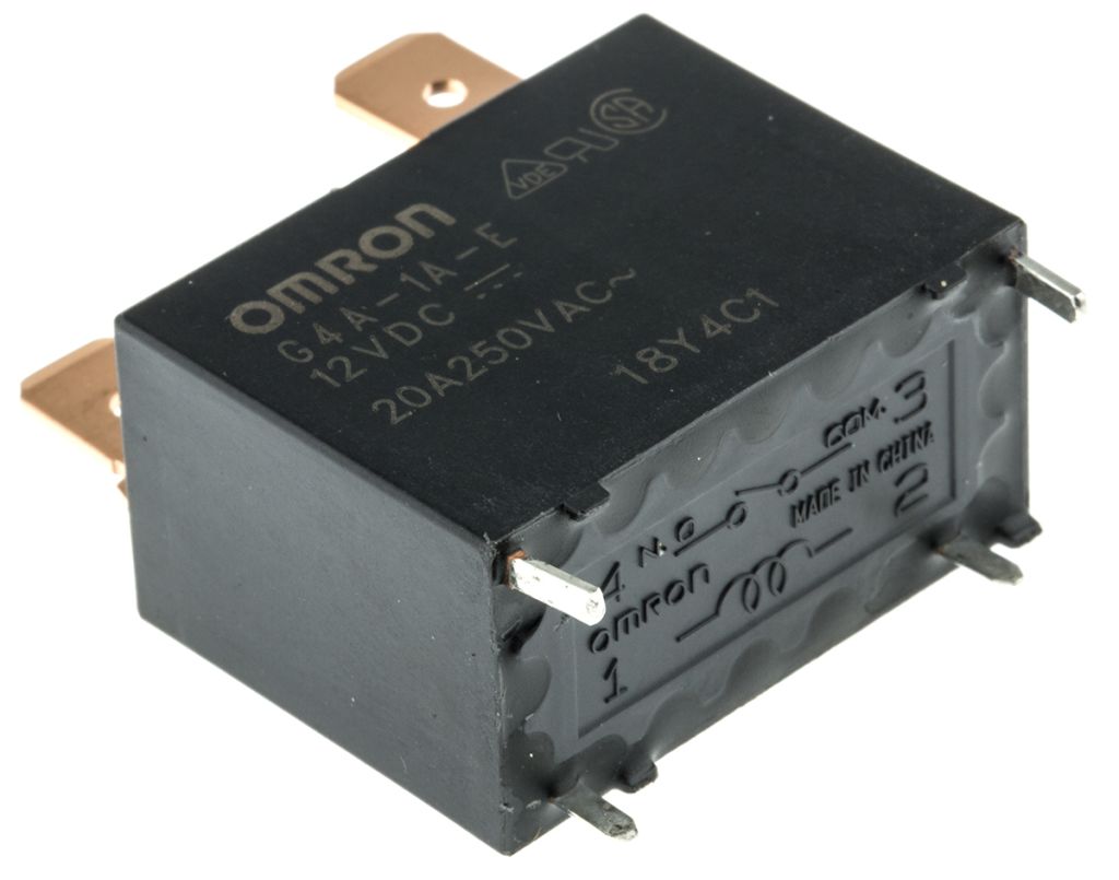 | Product description | Omron, 12V dc Coil Non-Latching Relay SPNO, 20A Switching Current Plug In Single Pole, G4A-1A-E DC12 |