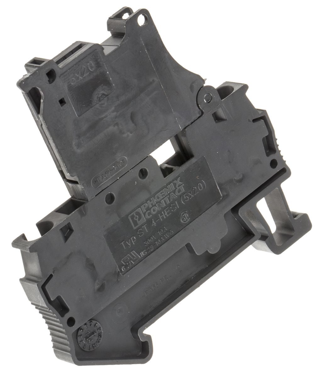 | Product description | Phoenix Contact Black ST 4-HESI (5X20) Fused DIN Rail Terminal, 28 → 10 AWG, 500 V |