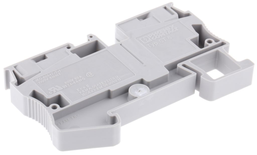 | Product description | Phoenix Contact Grey ST 6 Standard Din Rail Terminal, 24 → 8 AWG, 0.2 → 6mm², 1 kV |