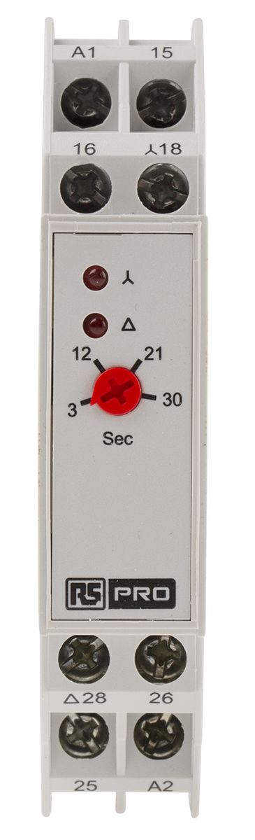 RS PRO Timer Relay, Star Delta, 240 → 415V ac 3 → 120s, DIN Rail Mount