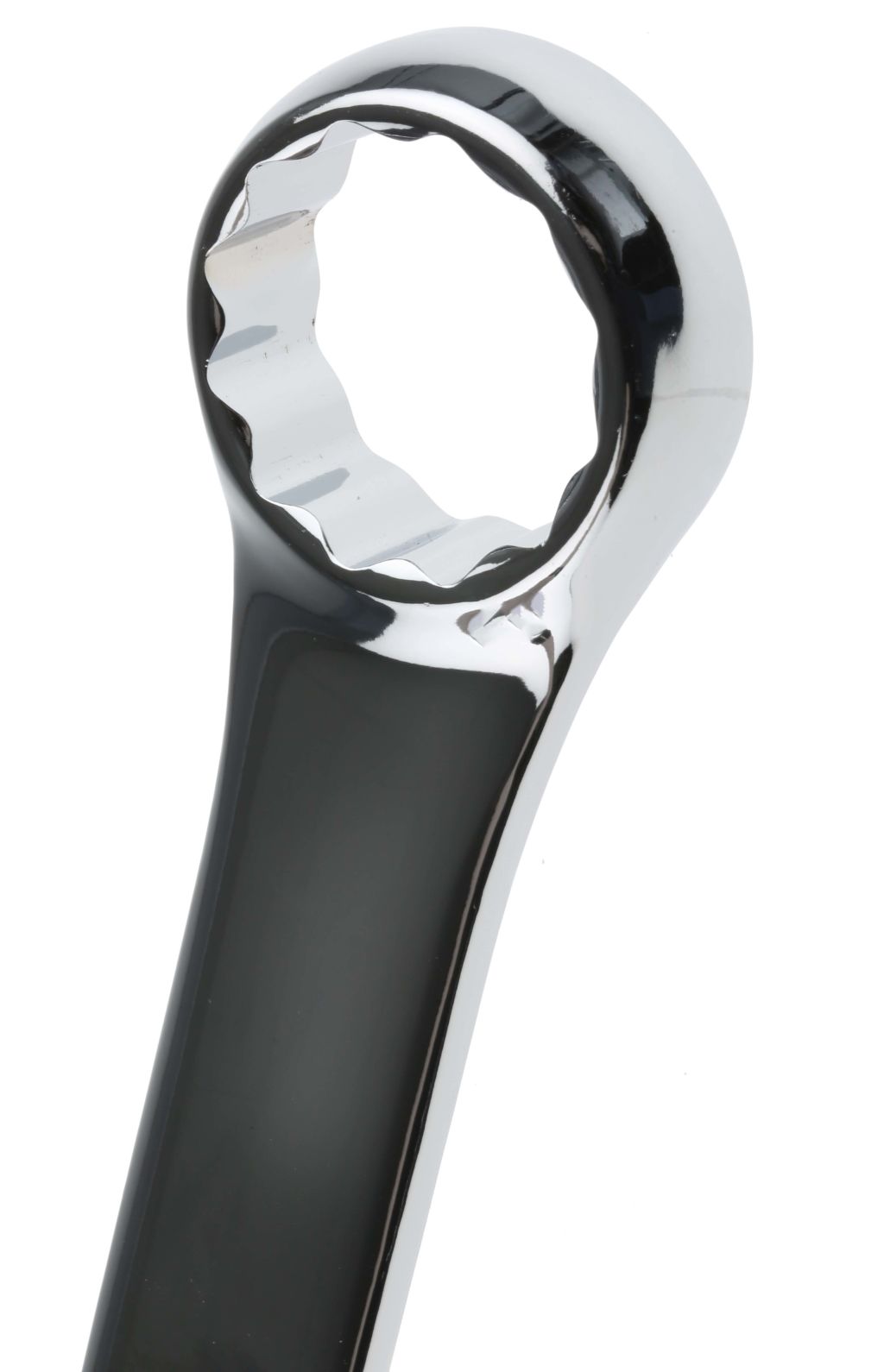 The combination spanner is constructed of chrome vanadium steel, which offers excellent load bearing strength and hardness, and also good resistance to corrosion. As such, this robust and reliable tool promises a long service life even in challenging environments. High-quality materials allow for safe operation, even at the high torques.
