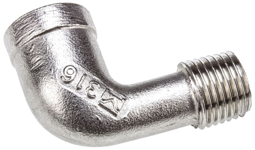 Brought to you by RS Pro, a series of stainless steel threaded fittings, suitable for applications requiring a secure and reliable pipe connection. Heavily used within the plumbing industry, water and gas will flow through in a tightly sealed construction. These 90 degree elbow fittings are made from a durable 316 stainless steel to ensure a simple and secure connection for pipe and hose work. All models are highly reliable and excellent quality.