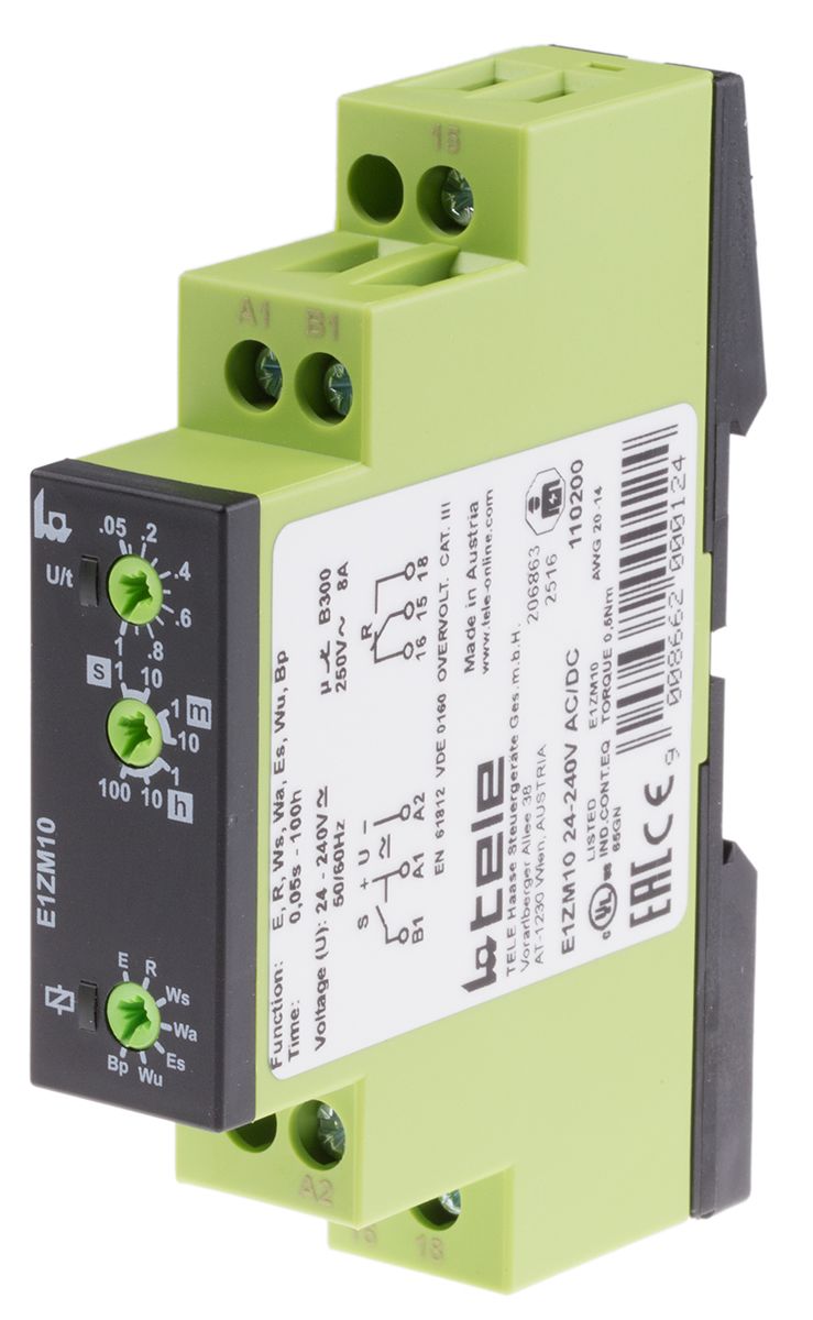 | Product description | Tele SPDT Multi Function Timer Relay, 24 → 240V ac/dc 50 ms → 100h, DIN Rail Mount |