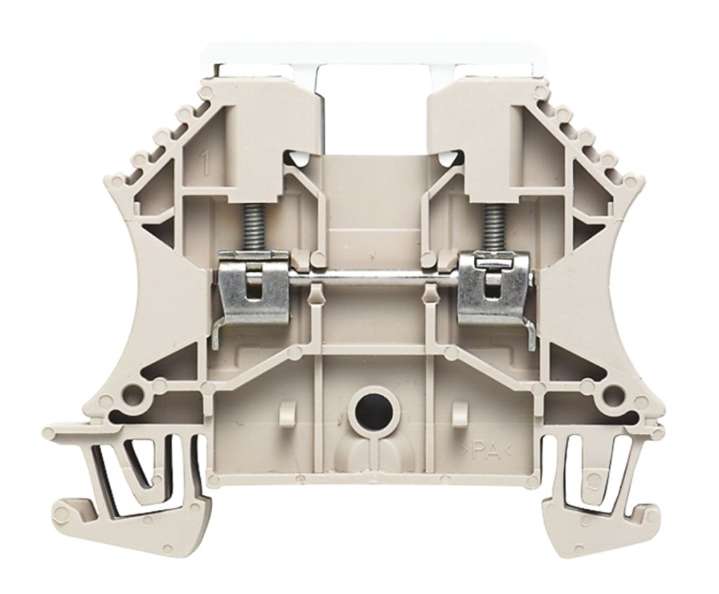 The ’W’ series screw clamp terminals are suitable for ’Top Hat’ DIN Rail and manufactured from nylon 6.6 which has a continuous temperature rating of 120°C (180°C short term). They are self-extinguishing to UL94V-0 and free from cadmium and halogen. Current bars are constructed from 10 mm electrolytic copper to ensure a current loading more than nominal rating. Terminals are suitable for mounting on symmetric ’Top Hat’ rail only (BS5584:1978, EN 50022) and are touch proof in accordance with BS 3042.