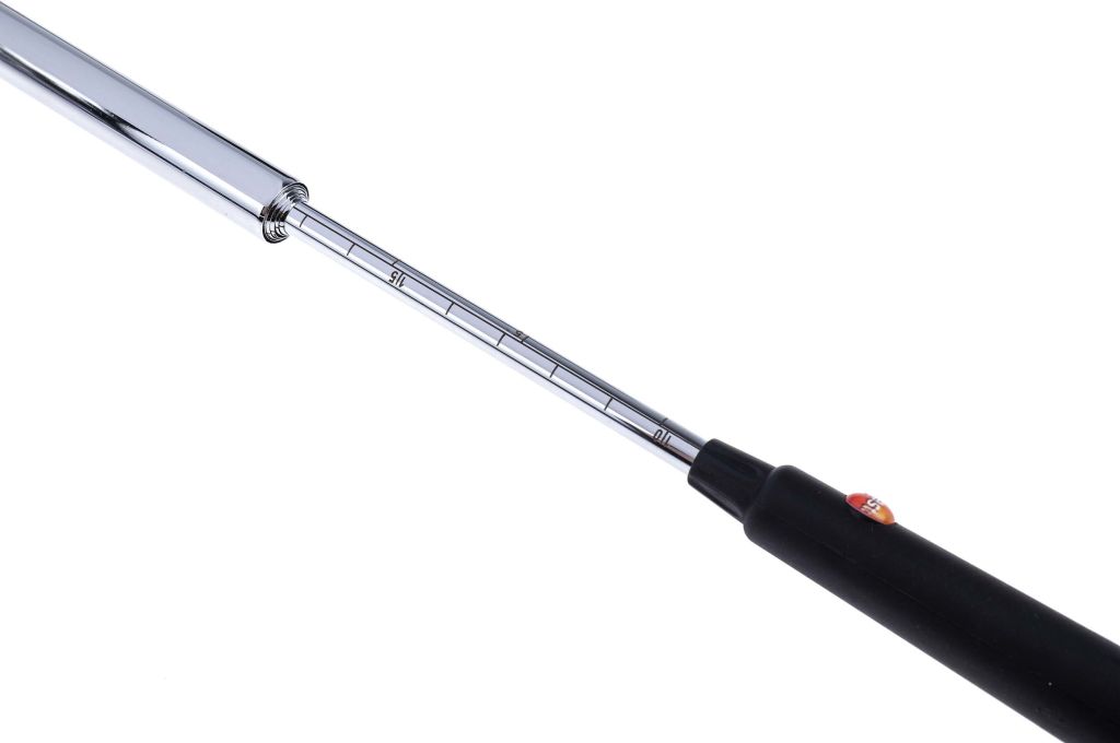 Compact in design, the hand-held instrument uses a high precision mini rotating vane to deliver readings with a high degree of accuracy. With a measuring range of 0.6 to 40 m/s, the Testo 416 anemometer can even be used at low speeds. Featuring a telescopic probe it can easily be extended and used for applications where measuring space is limited or hard to reach.