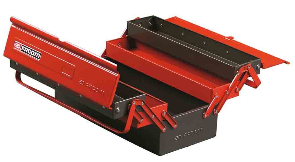 Facom BT.11A is a metal 5 tray tool box with large storage capacity. This tool box has the advantage of showing its contents when it is open and extremely compact when it is closed.