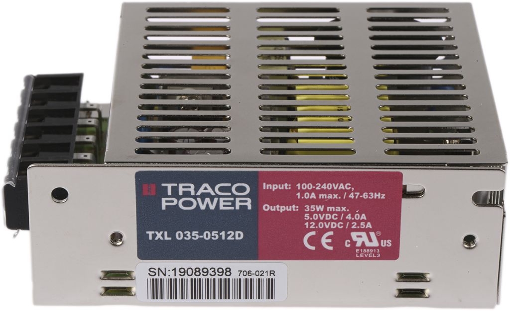 | Product description | TRACOPOWER Embedded Switch Mode Power Supply SMPS, 5 V dc, 12 V dc, 2.5 A, 4 A, 35W Enclosed |