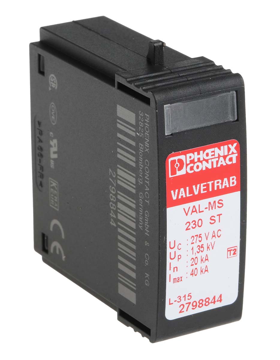 Phoenix Contact, VAL-MS 230 ST Surge Protector 230 V ac Maximum Voltage Rating 40kA Maximum Surge Current Surge