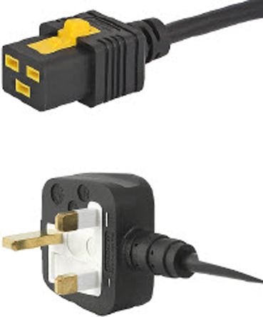 Schurter IEC C19 Socket to GB BS1363 Plug Power Cord, 2m