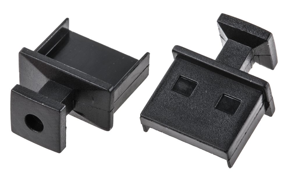 Stock number 763-5754 works as a panel support for USB A type sockets that overhang the edge of a PCB and abut a panel, such as stock number 748-0882. Stock number 763-5748 can then be used to form a Dust Cover with the panel front.