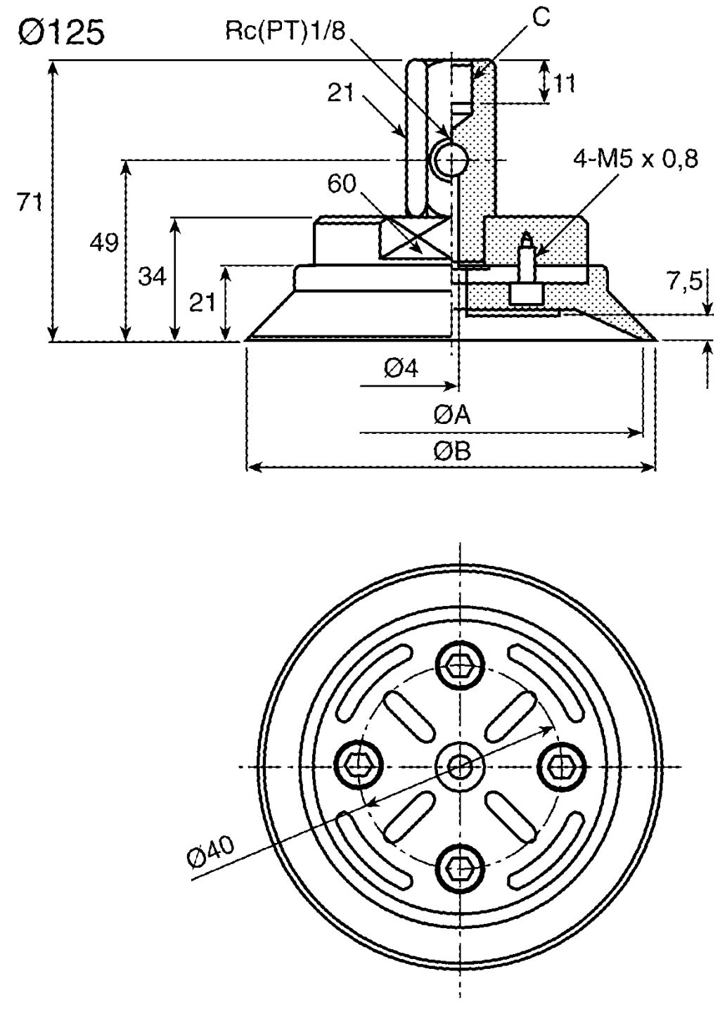 | Product description | SMC 50mm Flat with Rib NBR Suction Cup ZPR50CN-08-B8 |