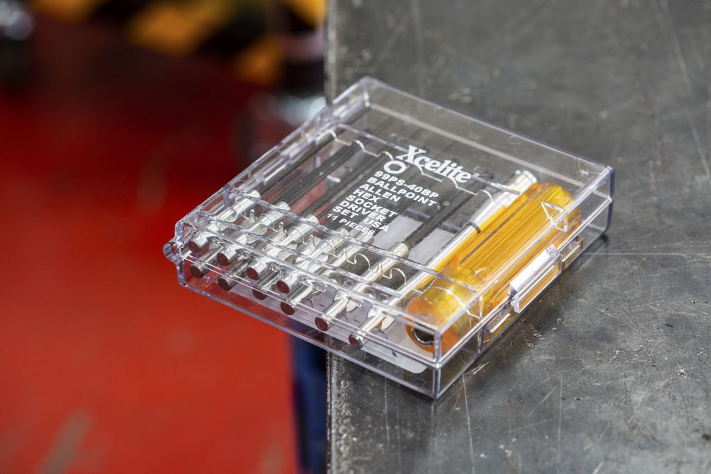 Introducing the Xcelite by Weller 11-piece hex key set. Upon inspection, each key has its own locating area inside the clear polycarbonate case, removal is easy as is assembly – each key slot into the Cab flute handle and if you require more reach there is an extension.