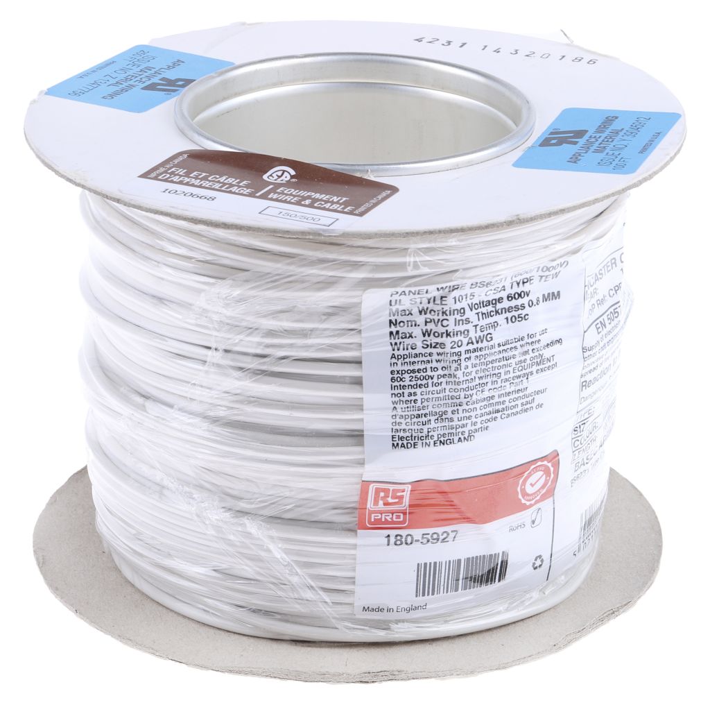 | Product description | RS PRO White 0.75 mm² Tri-rated Cable, 24/0.2 mm, 100m |