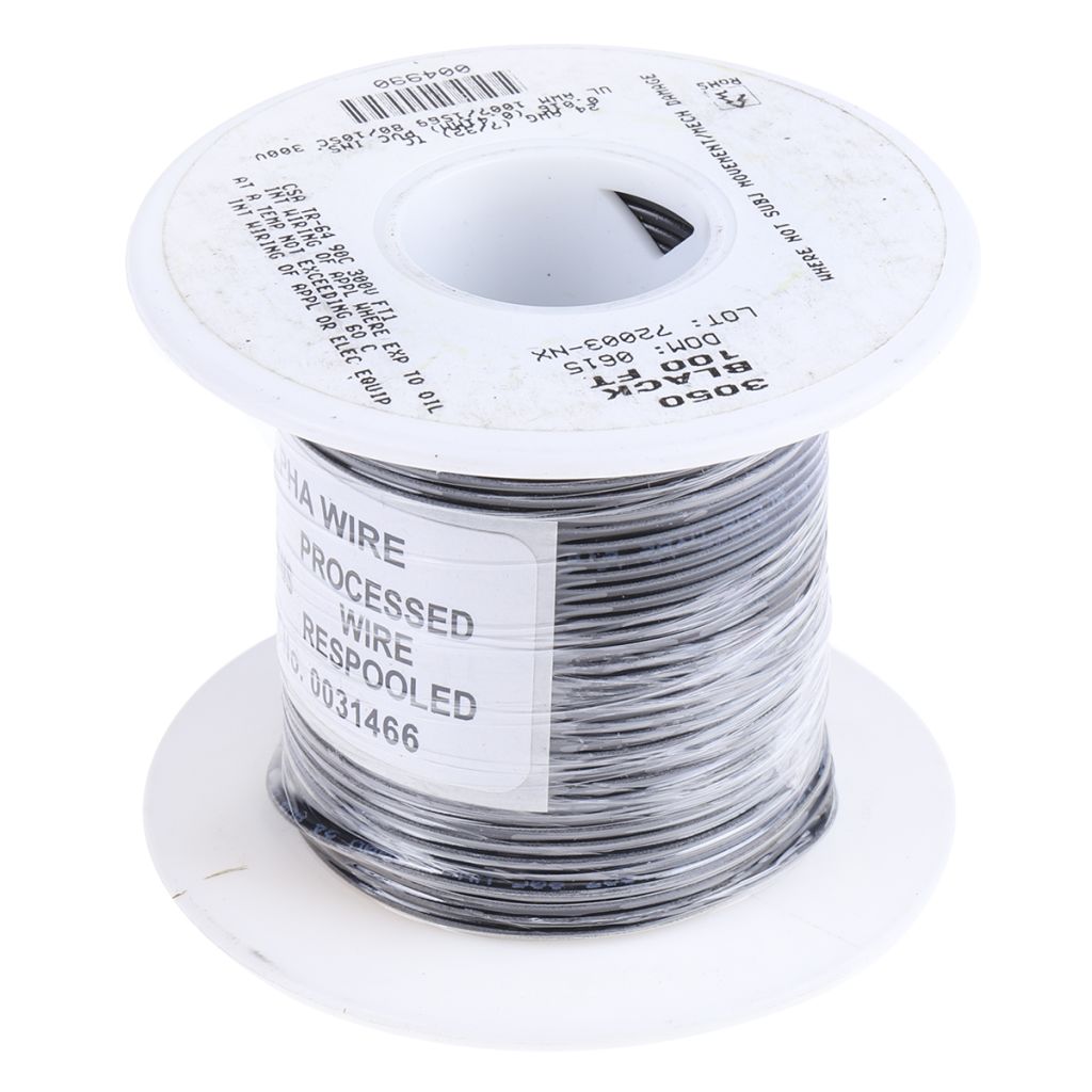 Alpha Wire Harsh Environment Wire 0.23 mm² CSA, Black 30m Reel, 24 AWG, PVC, +105°C, Hook Up Wire Series