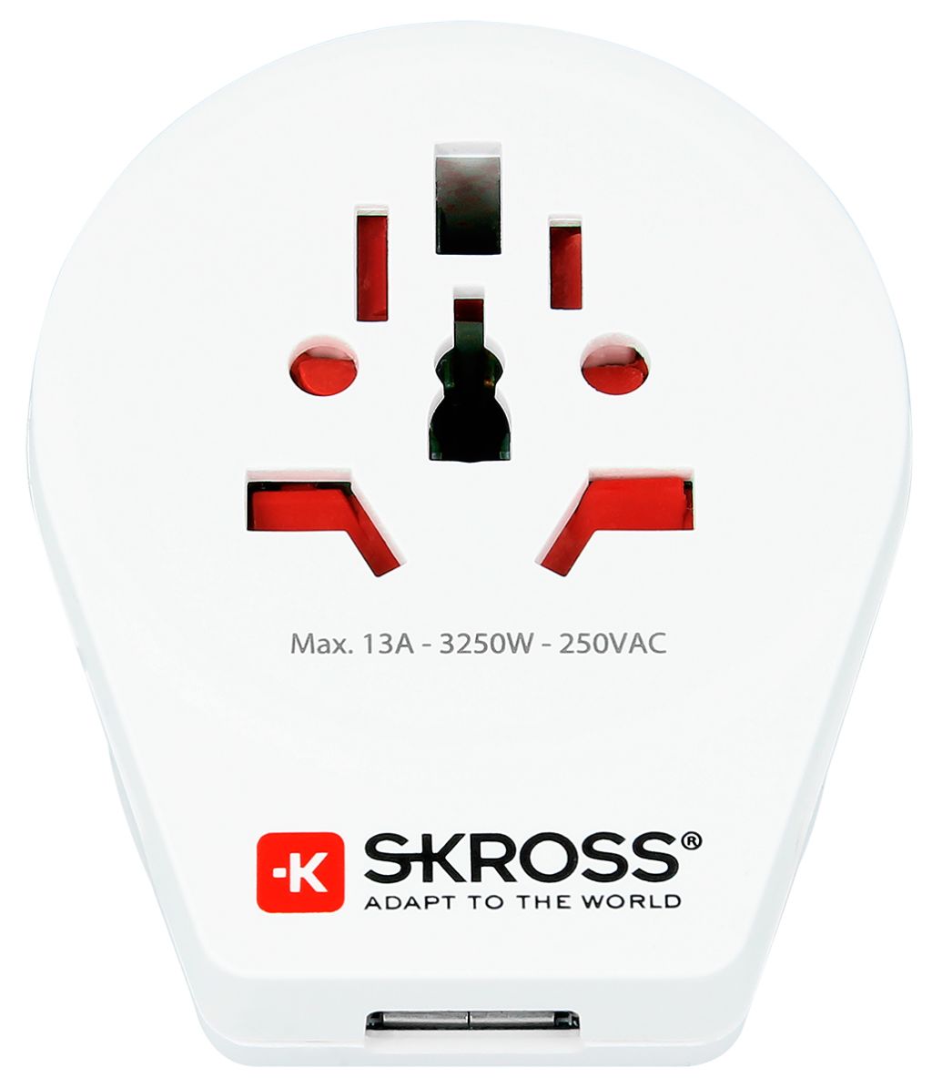 This SKROSS World to UK (Type G) USB country adapter is the ideal solution for travellers, who prefer a specific travel destination. The powerful country adapter is suitable for connecting even powerful devices such as laptops and hairdryers with USB charging capabilities. The country adapter offers the international guest the possibility of connecting their devices safely in more than 100 countries.
